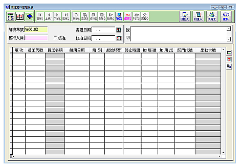 【排班資料管理系統】 排班資料管理系統是用來記錄員工的排班資料,此功能有兩種模式,一單一日跟一單多日,使用者可以針對不同的排班方式去操作。排班資料不單單只能一個一個員工輸入排班,為了解決員工多時排班時間會變長的問題,此功能提供了幾個能夠縮短時間的功能。 使用者可以先在 Excel 上先建立好每個員工的排班資料,再使用月匯入或日匯入的功能,點選排好班的Excel,系統就會自動將資料帶入功能中。若想直接在功能上做排班,可使用帶員工的功能,依條件將員工帶入,再將上班日期輸入進去,即可完成排班作業。