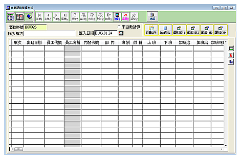 【出勤記錄管理系統】 出勤記錄管理系統是本系統的最核心的功能,記錄所有員工出缺勤狀況,像是出勤日期、門禁卡號、部門、班別、上下班時間、假班時間、中午休息時間……等資料。 此功能可配合讀卡機所記錄的刷卡紀錄匯入資料,匯入時系統會依照該員工的班別、請假單,去計算出缺勤時數。 當考勤系統結合人事薪資之後,出勤記錄管理系統的資料可以拋去人事薪資做發薪,為了解決每間公司不同的出勤狀況。 提供多種註記計算,使用者可以自訂特殊計算方式,來計算套裝沒有的特殊時數。