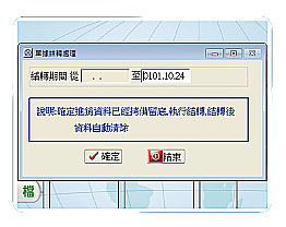 提供結轉功能 ,舊單據結轉 至獨立資料庫 以增加系統運 作效能。