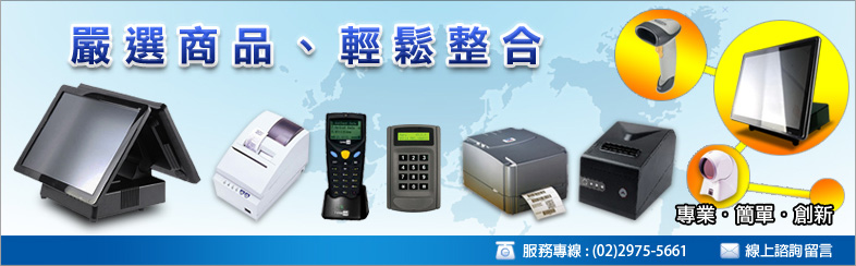 者服務客戶理念,提供一系列相關軟硬體設備整合方案,從一般餐飲零售業之 POS機、發票機 、標籤機、條碼機到會